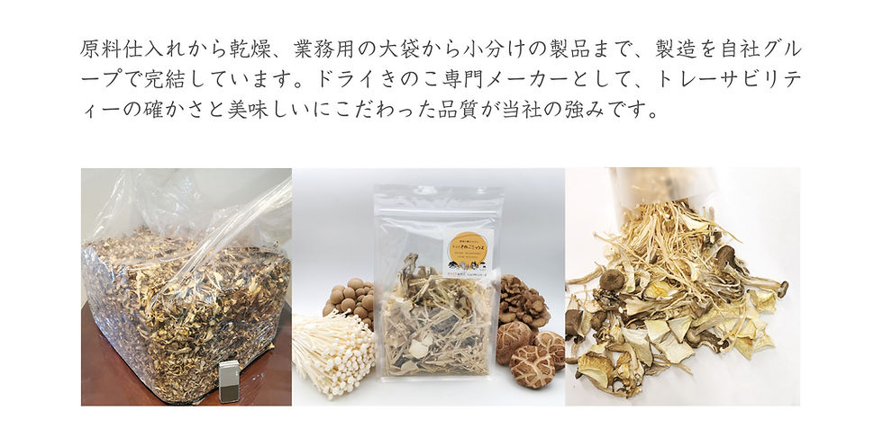 そこで、その課題を解決するために、弊社では「乾燥きのこ」という製法に着手しました。